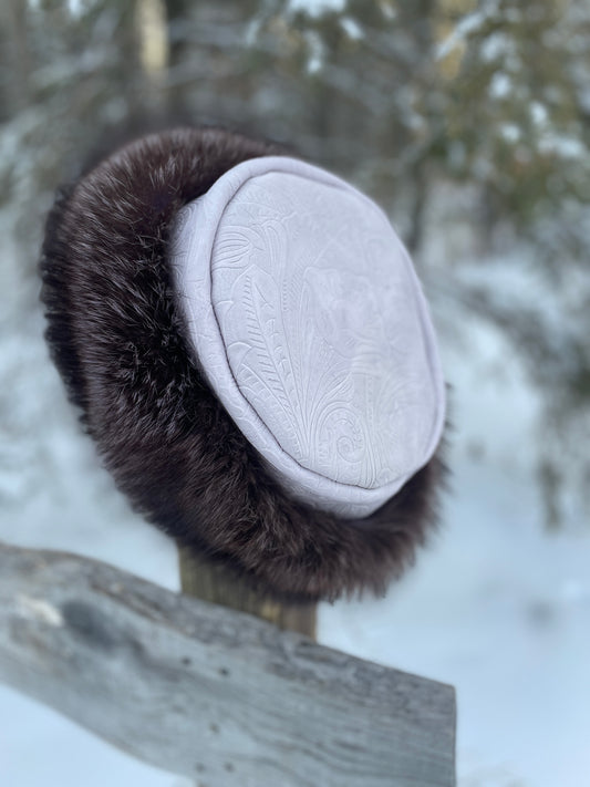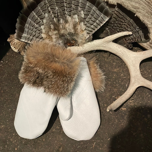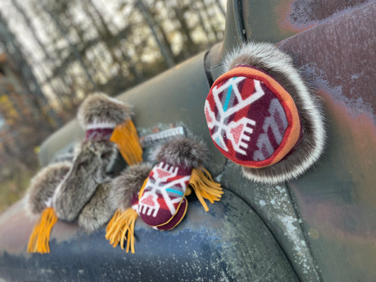 Limited Edition Grey Pendleton & White Marble Fox Mitts