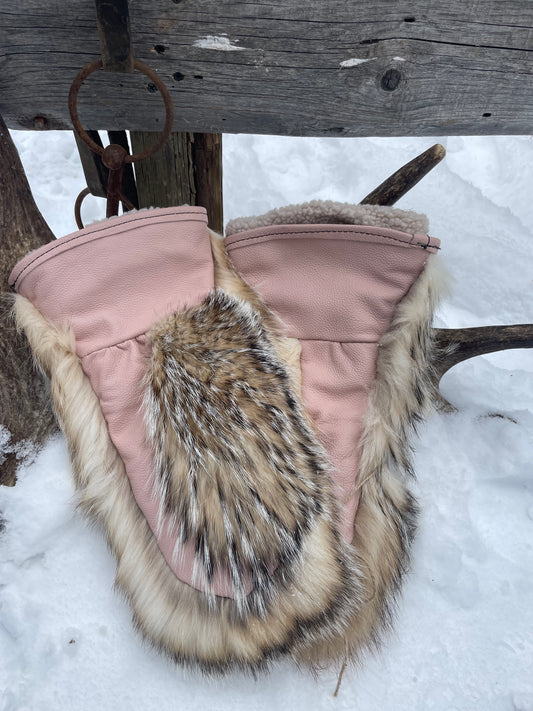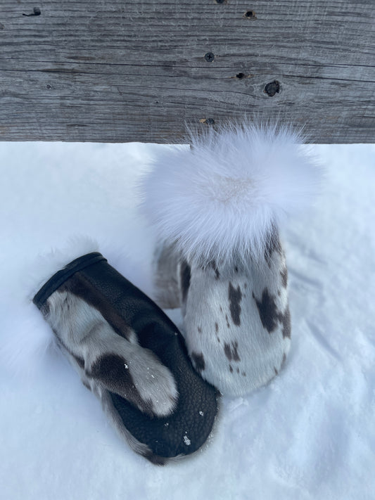 Beaver Trimmed, Cow Hair-on-Hide Uptown Mitts